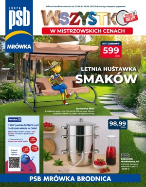 Wiemy, że nasi klienci mają różne potrzeby, dlatego dla każdego sklepu została przygotowana oddzielna oferta. Gazetka PSB Mrówka Brodnica została przygotowana na bazie produktów najchętniej kupowanych przez naszych klientów o danej porze roku. Znajdują się tu zawsze praktyczne akcesoria i narzędzia. Chcąc sprostać oczekiwaniom naszych klientów, promocje PSB Mrówka Brodnica obejmują swoim zakresem produkty oferowane w większości działów naszego sklepu.