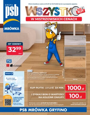 Wiemy, że nasi klienci mają różne potrzeby, dlatego dla każdego sklepu została przygotowana oddzielna oferta. Gazetka PSB Mrówka Gryfino została przygotowana na bazie produktów najchętniej kupowanych przez naszych klientów o danej porze roku. Znajdują się tu zawsze praktyczne akcesoria i narzędzia. Chcąc sprostać oczekiwaniom naszych klientów, promocje PSB Mrówka Gryfino obejmują swoim zakresem produkty oferowane w większości działów naszego sklepu.