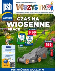 Wiemy, że nasi klienci mają różne potrzeby, dlatego dla każdego sklepu została przygotowana oddzielna oferta. Gazetka PSB Mrówka Wolsztyn została przygotowana na bazie produktów najchętniej kupowanych przez naszych klientów o danej porze roku. Znajdują się tu zawsze praktyczne akcesoria i narzędzia. Chcąc sprostać oczekiwaniom naszych klientów, promocje PSB Mrówka Wolsztyn obejmują swoim zakresem produkty oferowane w większości działów naszego sklepu.