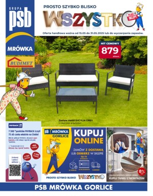 PSB Mrówka to sieć sklepów wchodząca w skład Grupy PSB, największej i najszybciej rozwijającej się sieci hurtowni materiałów budowlanych oraz sklepów sektora dom i ogród. Sklepy takie jak PSB Mrówka Gorlice umożliwiają klientom detalicznym zakup różnorodnych materiałów budowlanych, remontowych, wykończeniowych oraz akcesoriów ogrodowych w jednym miejscu. Pierwsze sklepy powstały w 2002 roku. Od tego czasu sieć prężnie i systematycznie rozwija się, zwiększając liczbę placówek, a także poszerzając asortyment o nowe produkty. Na terenie kraju PSB Mrówka działa głównie w miastach powiatowych oraz w miejscowościach gminnych (Mini-Mrówka).