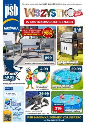 PSB Mrówka to sieć sklepów wchodząca w skład Grupy PSB, największej i najszybciej rozwijającej się sieci hurtowni materiałów budowlanych oraz sklepów sektora dom i ogród. Sklepy takie jak PSB Mrówka Kołobrzeg umożliwiają klientom detalicznym zakup różnorodnych materiałów budowlanych, remontowych, wykończeniowych oraz akcesoriów ogrodowych w jednym miejscu. Pierwsze sklepy powstały w 2002 roku. Od tego czasu sieć prężnie i systematycznie rozwija się, zwiększając liczbę placówek, a także poszerzając asortyment o nowe produkty. Na terenie kraju PSB Mrówka działa głównie w miastach powiatowych oraz w miejscowościach gminnych (Mini-Mrówka).