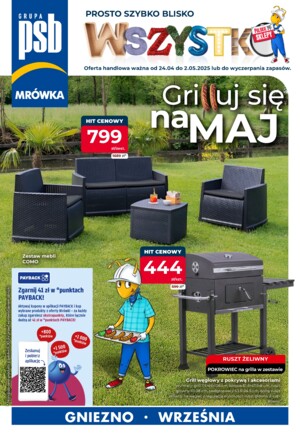 PSB Mrówka Września to nowoczesny market z sieci PSB Mrówka należącej do sektora dom i ogród. Można w nim nabyć towary niezbędne do remontu oraz utrzymania domów i ogrodów. Priorytetem jest najwyższa jakość produktów, którą gwarantują renomowani producenci artykułów wyposażenia i dekoracji wnętrz, materiałów budowlanych i narzędzi. W PSB Mrówka Września można kupić materiały budowlane, remontowe i wykończeniowe czy akcesoria do urządzenia domu bez względu na etap inwestycji. Potrzebne produkty znajdą tu osoby poszukujące materiałów wykończeniowych (m.in materiały do posadzek, ścian, sufitów, podłóg, farby), niezbędne produkty do poprowadzenia instalacji hydraulicznych, elektrycznych, a także akcesoria do urządzenia wnętrz. Zakupy w PSB Mrówka Września to także dobre rozwiązanie, gdy planujemy generalny remont pomieszczeń, czy po prostu chcemy wzbogacić nasz dom czy mieszkanie o dodatkowe elementy dekoracyjne.